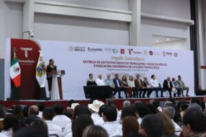 En su intervención, Ninfa Cantú Deándar, secretaria de Economía, afirmó que esta ceremonia refleja con claridad la visión humanista que ha instruido el gobernador Américo Villarreal para la política económica del estado: poner a las personas en el centro de cada decisión, convertir el crecimiento en prosperidad compartida y asegurar que el talento tamaulipeco tenga siempre respaldo, reconocimiento y futuro.