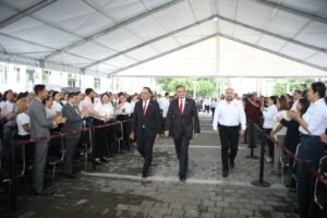Durante la ceremonia cívica de honores celebrada en la explanada del Supremo Tribunal de Justicia, el mandatario agradeció el respaldo de magistrados, jueces y consejeros en este proceso de cambio. Subrayó además la importancia de la construcción de la Ciudad Judicial, considerada la mayor obra de infraestructura del Poder Judicial en los últimos años, junto con la remodelación de la sede del tribunal.